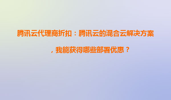 2025-10-31騰訊云混合云解決方案的部署優惠 作為騰訊云代理商,我們致力于為客戶提供高效、靈活且高性價比的混合云解決方案。通過騰訊云的強大技術支持和豐富的產品矩陣,客戶可以在本地數據中心與云平臺之間實現無縫集成...