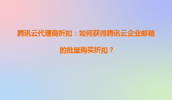 2025-10-29騰訊云代理商折扣:如何獲得騰訊云企業郵箱的批量購買折扣? 一、騰訊云企業郵箱的產品優勢 騰訊云企業郵箱是基于騰訊多年郵件服務經驗的云端解決方案,具有以下核心優勢: 高安全性:采用銀行級SSL加密傳輸...