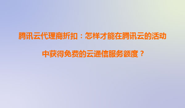 2025-10-27在騰訊云活動中獲取免費云通信服務額度的秘訣 了解騰訊云代理商折扣政策 騰訊云作為國內領先的云服務提供商,經常通過代理商渠道推出各類優惠活動。其中,云通信服務作為其核心產品之一,時常會通...
