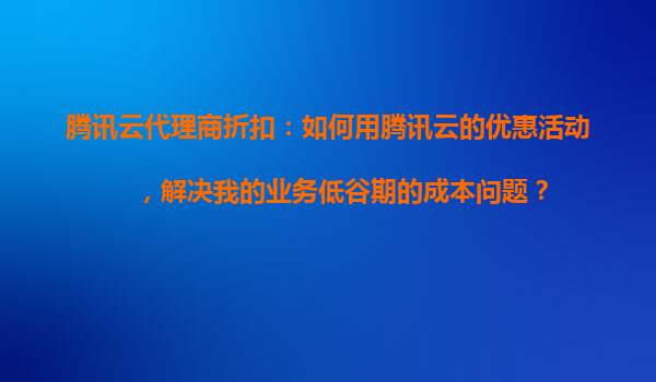 2025-10-27騰訊云代理商折扣:如何用騰訊云優惠活動,解決業務低谷期的成本問題? 一、業務低谷期的成本挑戰 對于許多企業而言,業務波動是常態。在低谷期,固定成本(如...