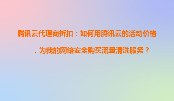 2025-10-26騰訊云代理商折扣:如何利用騰訊云活動價購買流量清洗服務 一、什么是流量清洗服務? 在網絡安全領域,流量清洗(DDoS防護)是一種通過過濾惡意流量、保障正常業務訪問的關鍵服務。騰訊云的流量清洗服...
