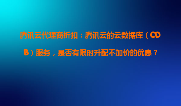 2025-10-26騰訊云代理商折扣:云數據庫(CDB)限時升配不加價優惠解析 一、騰訊云CDB的核心優勢 騰訊云關系型數據庫(CloudDatabase)作為企業級云數據庫服務,具有以下核心能力: 高可用架構:支持主從熱...