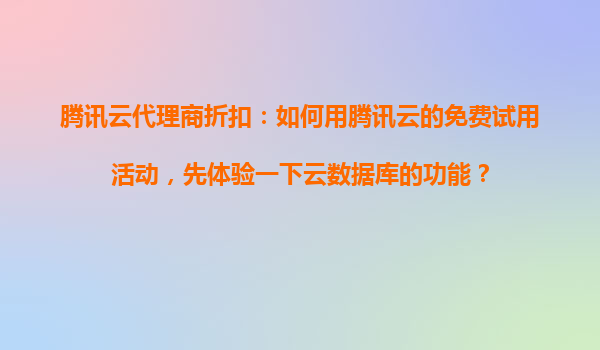 2025-10-23騰訊云代理商折扣:如何用騰訊云的免費試用活動體驗云數據庫功能? 為什么要選擇騰訊云? 騰訊云作為國內領先的云計算服務提供商,憑借其強大的技術實力和豐富的產品線,已成為眾多企業和...