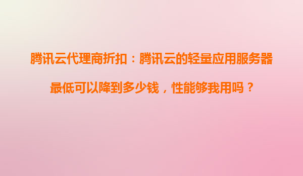2025-10-22騰訊云代理商折扣:騰訊云的輕量應用服務器最低可以降到多少錢,性能夠我用嗎? 一、騰訊云輕量應用服務器的核心優勢 騰訊云輕量應用服務器(Lighthouse)是一款專為中小企業和開發者設計的...