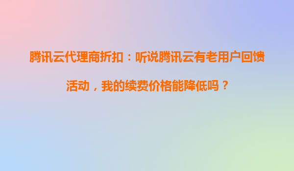 2025-10-23騰訊云代理商折扣:老用戶回饋活動解析與續費優惠指南 一、騰訊云老用戶回饋活動概述 騰訊云作為國內領先的云計算服務商,長期通過代理商折扣和老用戶回饋活動提升客戶黏性。近期推出的"...