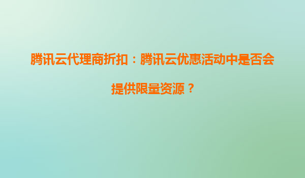2025-10-21騰訊云代理商折扣:騰訊云優惠活動中是否會提供限量資源? 在云計算市場競爭日益激烈的今天,騰訊云作為國內領先的云服務提供商,憑借其強大的技術實力和豐富的產品線,吸引了大量企業和個人用戶。為了進一...