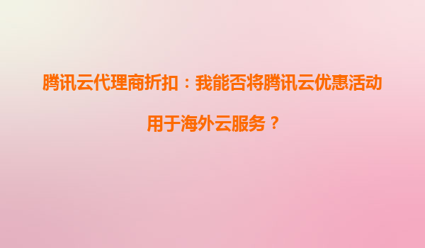 2025-10-21騰訊云代理商折扣:能否將騰訊云優惠活動用于海外云服務? 一、騰訊云海外服務與優惠活動的兼容性 騰訊云作為全球領先的云計算服務商,業務覆蓋全球五大洲,提供包括香港、新加坡、硅谷、法蘭克福等在內的...