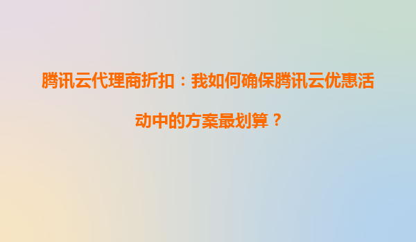 騰訊云代理商折扣:我如何確保騰訊云優惠活動中的方案最劃算? 在數字化轉型的浪潮中,云計算已成為企業降本增效的重要工具。騰訊云作為國內領先的云服務提供商,憑借其穩定的服務、豐富的產品線和靈活的優惠活...