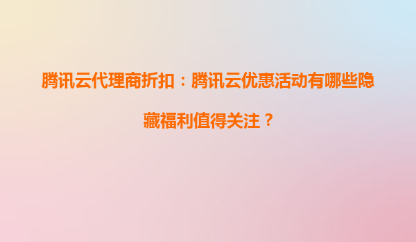 2025-10-11騰訊云代理商折扣:騰訊云優惠活動中DNS服務是否有專屬折扣? 一、騰訊云代理商折扣的核心優勢 騰訊云作為國內領先的云計算服務商,通過代理商體系為用戶提供更靈活的折扣方案。代理商通...
