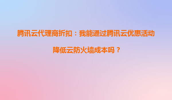 2025-10-06騰訊云代理商折扣:我能通過騰訊云優惠活動降低云防火墻成本嗎? 一、騰訊云代理商折扣的核心優勢 騰訊云作為國內領先的云服務提供商,其代理商體系能為用戶帶來顯著的采購成本優勢。通過官方認證代理商渠...