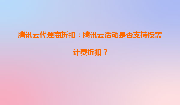 2025-10-05騰訊云代理商折扣:騰訊云活動是否支持按需計費折扣? 一、騰訊云按需計費模式簡介 騰訊云作為國內領先的云計算服務提供商,其按需計費(Pay-As-You-Go)模式是用戶靈活使用云資源的核心方式之一...
