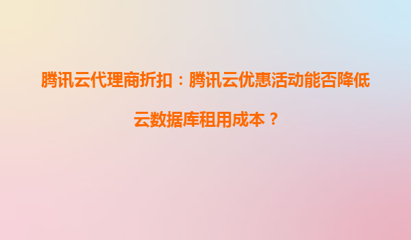 騰訊云代理商折扣:如何通過優惠活動降低云數據庫租用成本? 騰訊云代理商折扣的核心優勢 騰訊云作為國內領先的云服務提供商,通過與代理商合作推出專屬折扣政策,大幅降低了企業上云的門檻。代理商通常能...