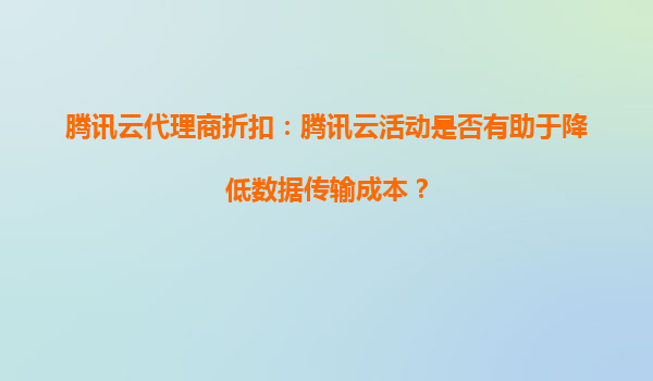 2025-10-04騰訊云代理商折扣:騰訊云活動是否有助于降低數據傳輸成本? 引言 在數字化轉型的浪潮中,云計算已成為企業IT基礎設施的核心組成部分。數據傳輸成本作為作為云服務使用中的一項重要支出...