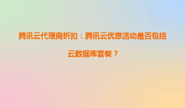 2025-10-04騰訊云代理商折扣:騰訊云優惠活動是否包括云數據庫套餐? 一、騰訊云代理商折扣概述 騰訊云作為國內領先的云計算服務提供商,不僅提供豐富的云產品,還通過代理商渠道為用戶帶來更多優惠。許多用戶在選擇...