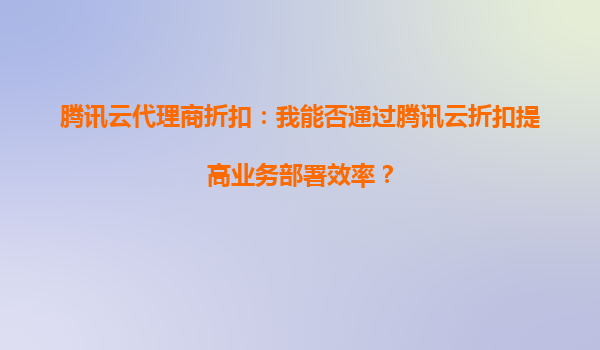2025-10-04騰訊云代理商折扣:提升業務部署效率的利器 騰訊云代理商折扣的價值 通過騰訊云代理商提供的折扣服務,企業能夠以更低的成本獲取高質量的云計算資源。這不僅降低了IT基礎設施的投入,還能將節省的資金用于...