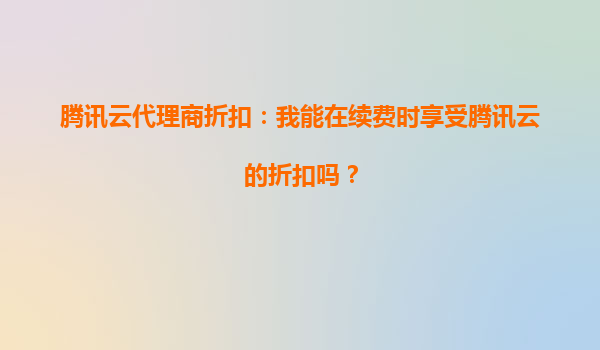 2025-09-27騰訊云代理商折扣:我能在續費時享受騰訊云的折扣嗎? 隨著云計算技術的快速發展,越來越多的企業和個人選擇將業務遷移到云端。騰訊云作為國內領先的云計算服務提供商,憑借其強大的技術實力和豐富的產品線,贏...