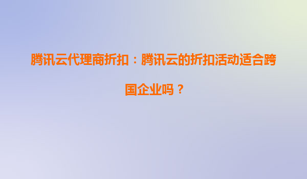 騰訊云代理商折扣:騰訊云的折扣活動適合跨國企業嗎? 引言 隨著全球數字化轉型的加速,越來越多的跨國企業開始將業務遷移到云端。騰訊云作為中國領先的云服務...