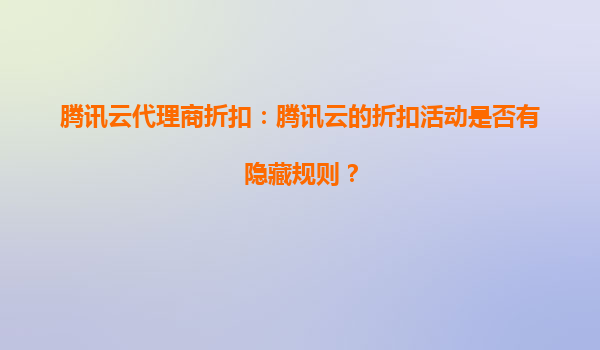 2025-09-24騰訊云代理商折扣:騰訊云的折扣活動是否有隱藏規則? 一、騰訊云官方活動的常見規則解析 騰訊云作為國內領先的云計算服務商,定期推出各類折扣活動吸引用戶,如新用戶首購優惠、限時秒...