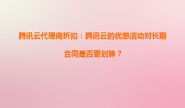 2025-09-22騰訊云代理商折扣:長期合同是否更劃算?深度解析騰訊云優勢 一、騰訊云的核心優勢 在探討長期合同的優惠策略前,首先需要了解騰訊云作為國內領先云服務商的三大核心優勢: ...