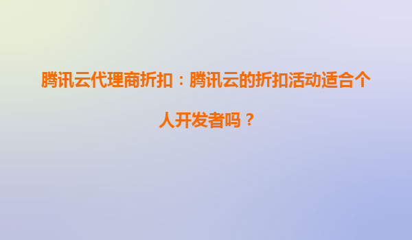 騰訊云代理商折扣:騰訊云的折扣活動適合個人開發者嗎? 1.騰訊云的核心優勢 騰訊云作為國內領先的云計算服務提供商,憑借其強大的技術實力和豐富的產品線,為開發者提供了穩定、高效的云計算服務。...