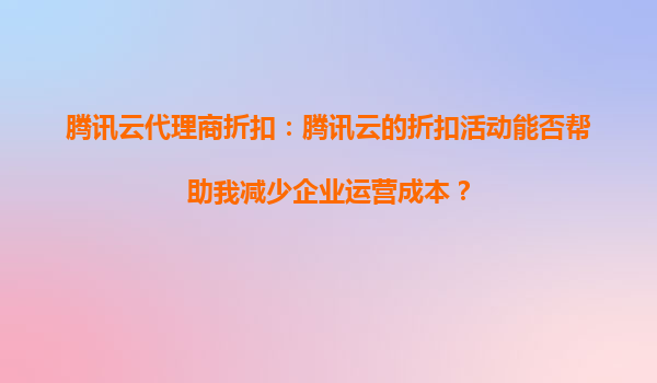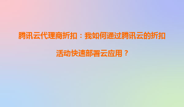 騰訊云代理商折扣:如何通過騰訊云的折扣活動快速部署云應用? 一、騰訊云的核心優勢與代理商折扣的價值 騰訊云作為國內領先的云服務提供商,憑借其高性能計算資源、全球覆蓋的數據中心...