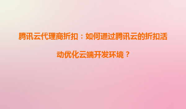 騰訊云代理商折扣:如何通過騰訊云的折扣活動優化云端開發環境? 一、騰訊云的核心優勢與開發者價值 作為國內領先的云計算服務商,騰訊云為開發者提供了完整的云端支持體系: ...