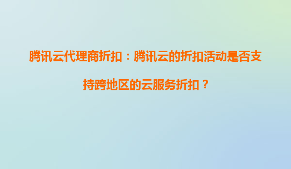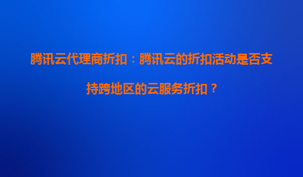 2025-09-17騰訊云代理商折扣:跨地區云服務折扣解析與騰訊云優勢 一、騰訊云代理商折扣活動概述 騰訊云作為國內領先的云計算服務提供商,通過代理商體系為客戶提供靈活的折扣方案。代理商折扣通常覆蓋計算、存儲、數...