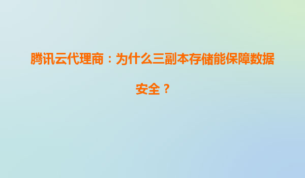 騰訊云代理商解讀:三副本存儲如何為您的數據安全筑起鋼鐵長城