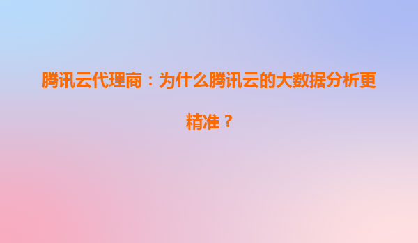 騰訊云代理商解讀:為什么騰訊云的大數據分析更精準?