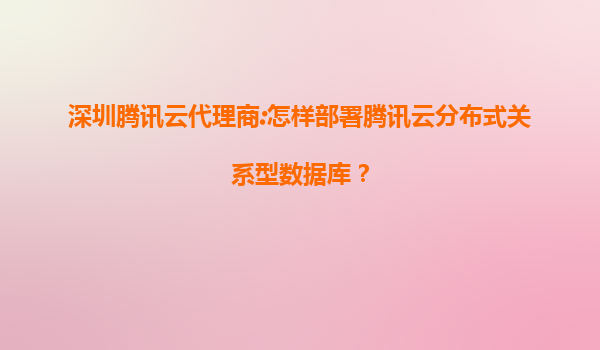 深圳騰訊云代理商指南:如何高效部署騰訊云分布式關系型數據庫