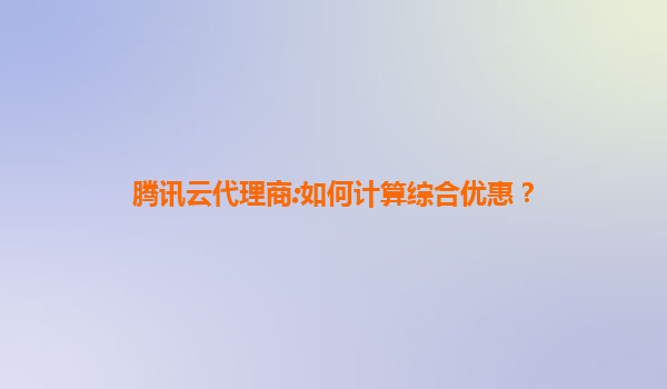 騰訊云代理商:如何計算綜合優惠?