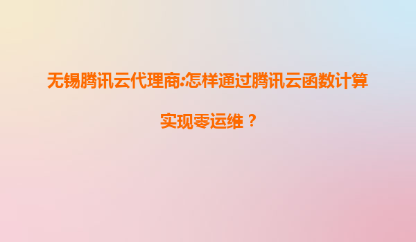無錫騰訊云代理商:如何通過騰訊云函數計算實現零運維