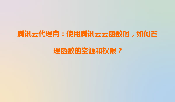 騰訊云代理商指南:如何高效管理云函數資源與權限