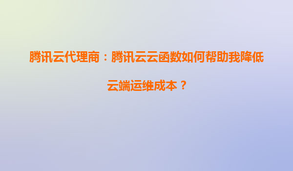 騰訊云代理商:騰訊云云函數如何幫助我降低云端運維成本?