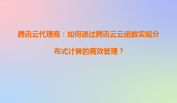 騰訊云代理商:如何通過騰訊云云函數實現分布式計算的高效管理