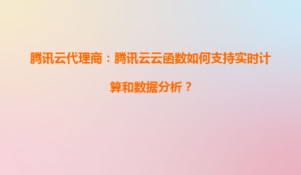 騰訊云代理商:騰訊云云函數如何支持實時計算和數據分析?