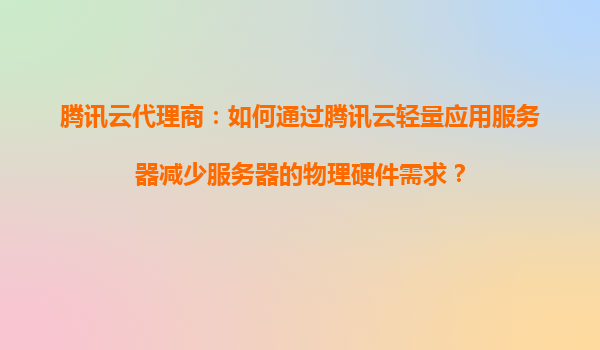 如何通過騰訊云輕量應用服務器降低物理硬件需求