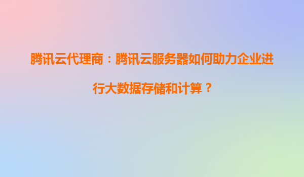 騰訊云代理商:騰訊云服務器如何助力企業進行大數據存儲和計算?