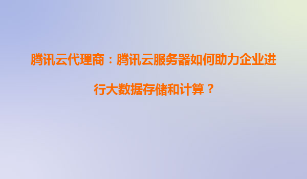 騰訊云代理商:騰訊云服務器如何助力企業進行大數據存儲和計算?