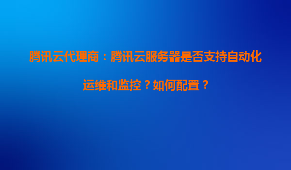 騰訊云代理商:騰訊云服務器是否支持自動化運維和監控?如何配置?