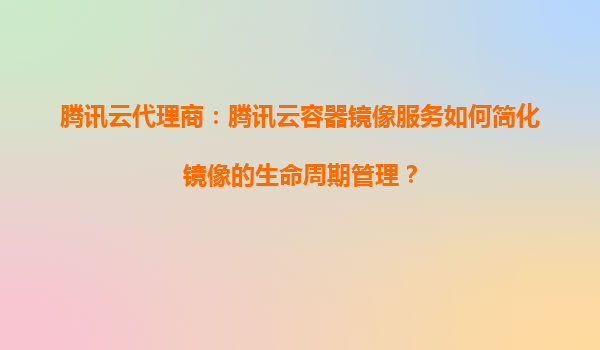 騰訊云代理商:騰訊云容器鏡像服務如何簡化鏡像的生命周期管理?