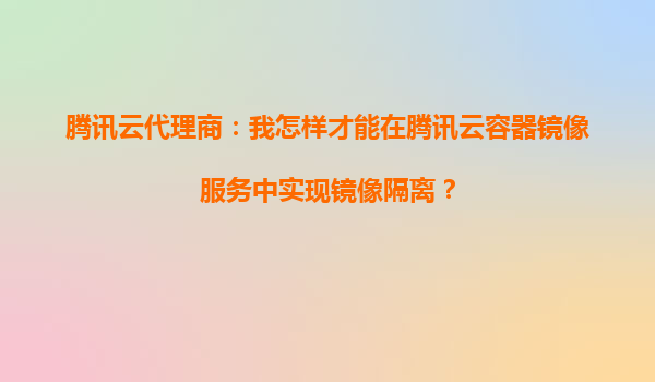 騰訊云代理商指南:如何在騰訊云容器鏡像服務中實現鏡像隔離