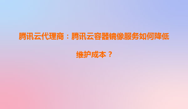 騰訊云代理商:騰訊云容器鏡像服務如何降低維護成本?