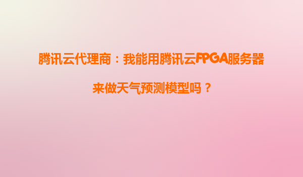 騰訊云代理商:我能用騰訊云FPGA服務器來做天氣預測模型嗎?