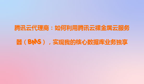 騰訊云代理商:如何利用騰訊云裸金屬云服務器(BMS)實現核心數據庫業務獨享資源