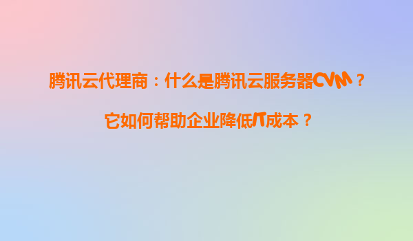 騰訊云代理商:騰訊云服務器CVM的核心價值與成本優化解析