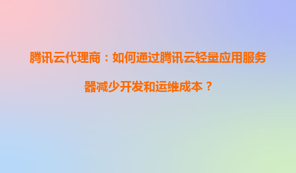 騰訊云代理商:如何通過騰訊云輕量應用服務器優化資源的分配和利用? 引言 在云計算時代,企業和個人用戶對服務器的資源分配和利用效率提出更高要求。作為國內領先的云服務提供商,騰訊云憑借...