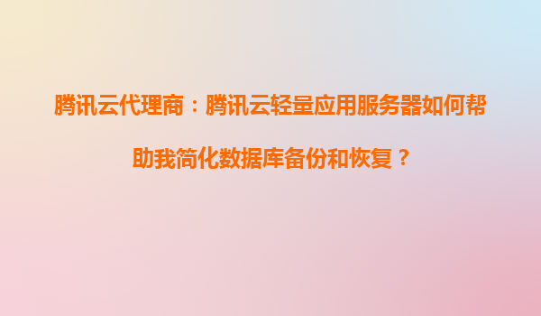 2025-09-16騰訊云代理商:騰訊云輕量應用服務器如何幫助我簡化數據庫備份和恢復? 一、騰訊云輕量應用服務器的核心優勢 騰訊云輕量應用服務器(Lighthouse)是一款面向中小企業和開發者設計的輕量級云計算服務,具備...