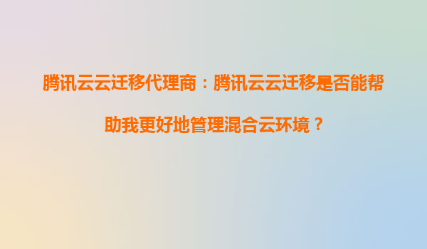2025-08-31騰訊云云遷移代理商:騰訊云云遷移是否能幫助我更好地管理混合云環境? 一、騰訊云云遷移的核心價值與混合云管理需求 混合云環境因其靈活性和成本效益成為企業數字化轉型的主流選擇,但跨平臺資源管理、數...