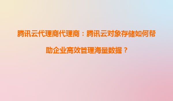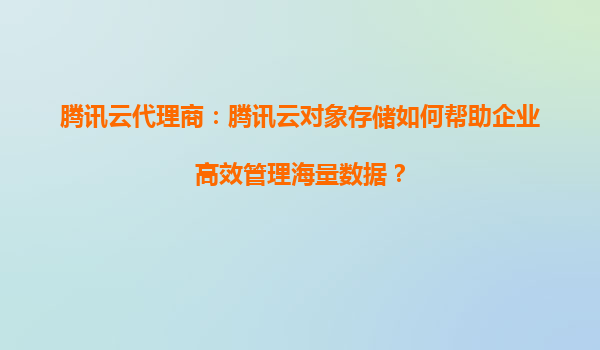 騰訊云代理商:騰訊云對象存儲如何幫助企業高效管理海量數據? 在數字化時代,企業面臨的數據量呈現爆炸式增長,如何高效、安全地管理和存儲海量數據成為企業發展的關鍵挑戰之一。騰訊云對象存儲(Clo...